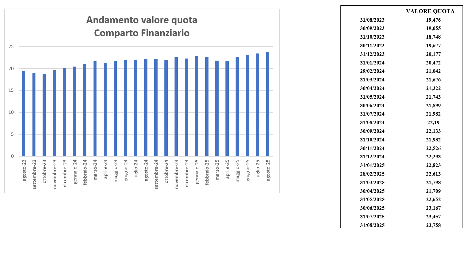 Di seguito il prospetto del NAV mensile del Comparto Finanziario aggiornato al 31 agosto 2025.