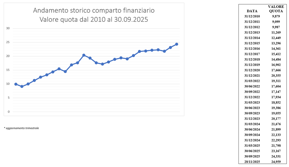 Di seguito il prospetto del NAV mensile del Comparto Finanziario aggiornato al 28 novembre 2025.