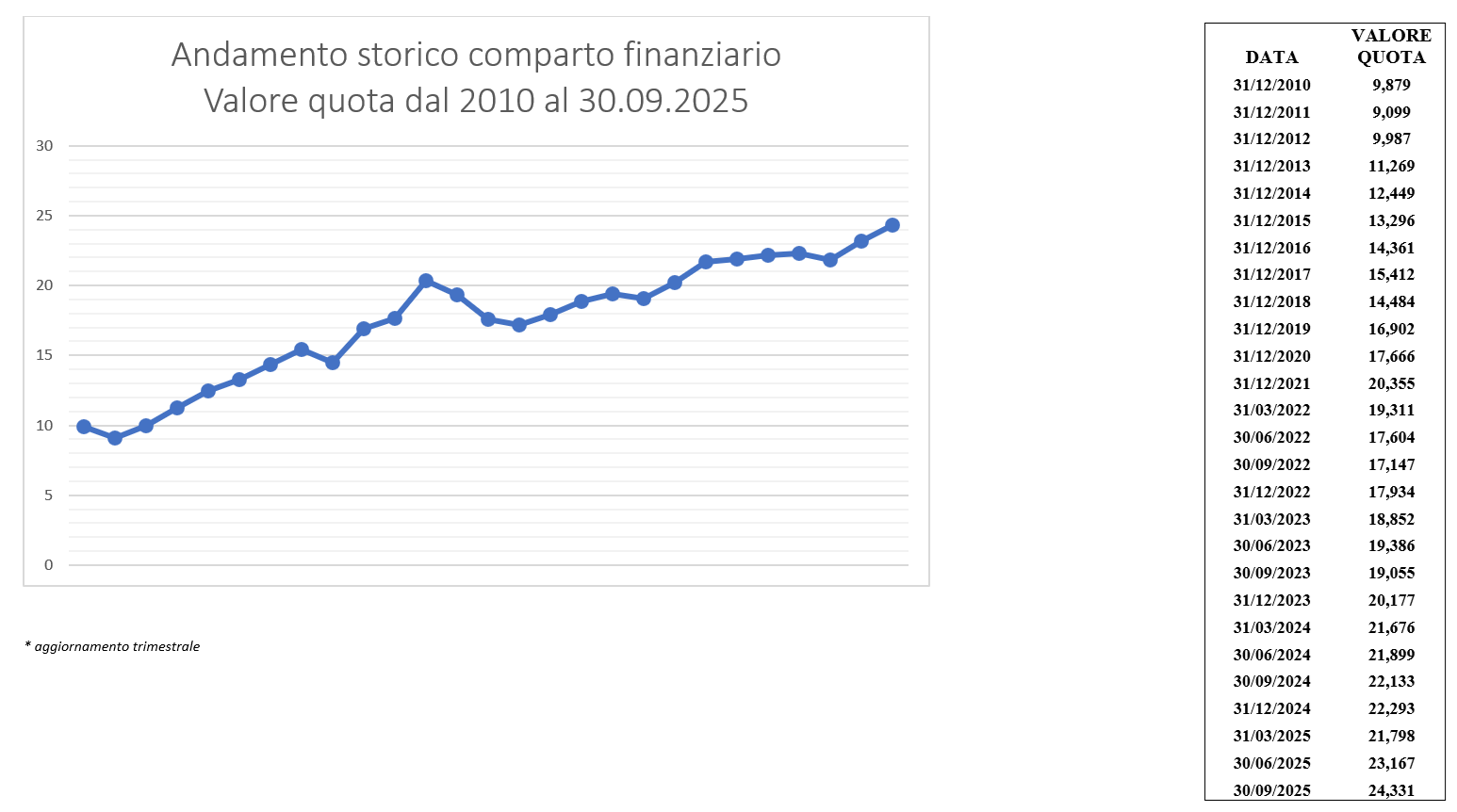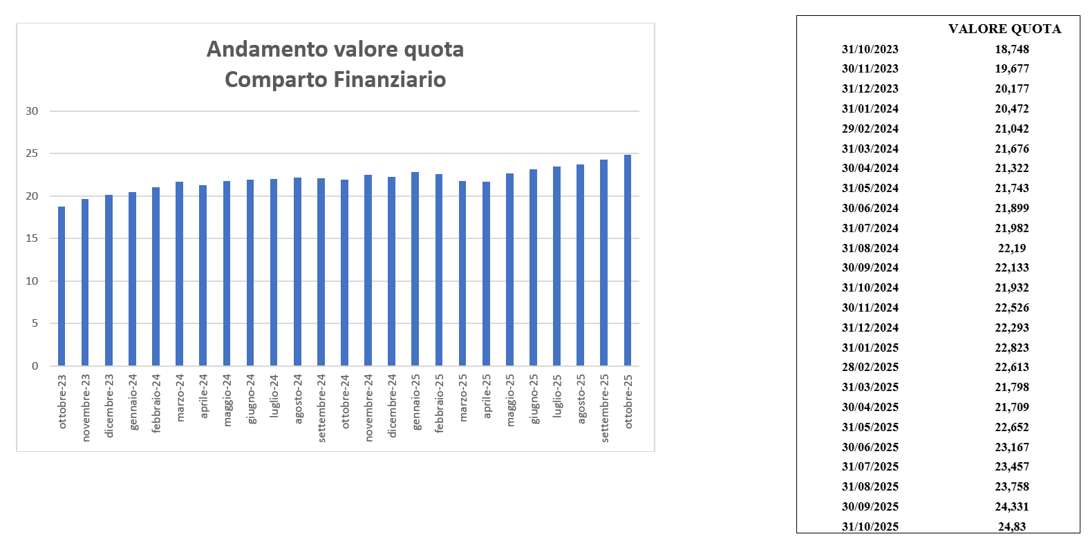 Di seguito il prospetto del NAV mensile del Comparto Finanziario aggiornato al 31 ottobre 2025.