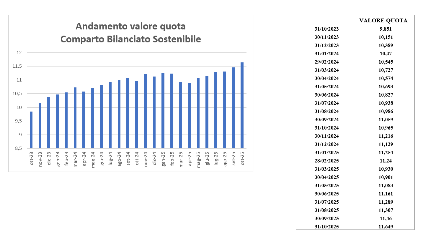 Di seguito il prospetto del NAV mensile del Comparto Bilanciato Sostenibile aggiornato al 31 ottobre 2025.